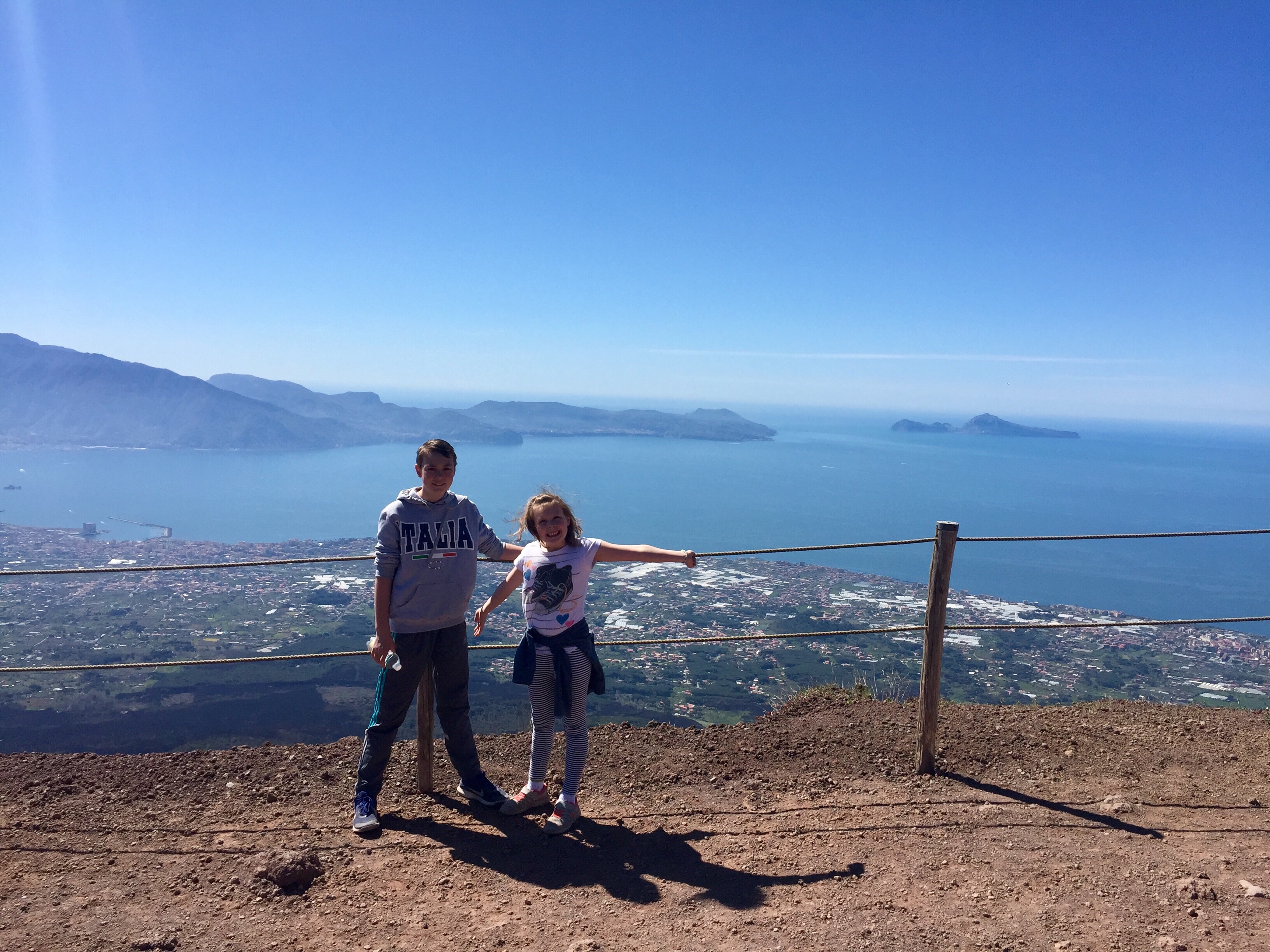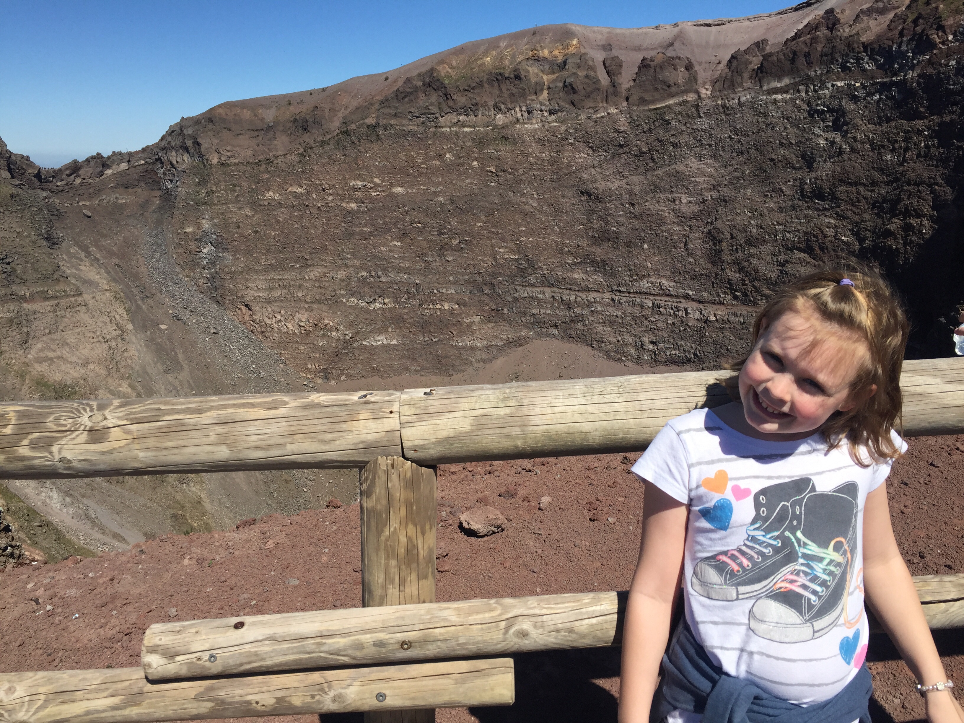 Today we climbed up Mt. Vesuvius which still erupts! I thought the volcano might explode while I climbed it! First, we drove up an exceeding amount of winding roads. Next, we took a shuttle up about 1 1/2 kilometers. Then, we hiked up Mt. Vesuvius and looked in the hole of the volcano. The hole had some smoke billowing out but, it wasn’t as much as we hoped to see. Dad, Owen, and I went to see some other sides of the hole while Mom, Jackie, and Maddie stayed on the other side to take a brake. Then we hiked back down and waited until the shuttle arrived. Finally we drove home to our apartment.🐳🐰